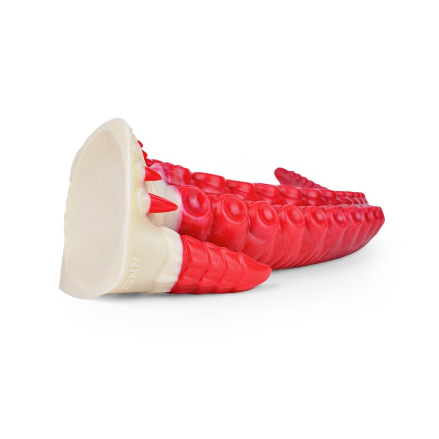 Dildo mit atypischer Form und strukturierter Oberfläche.