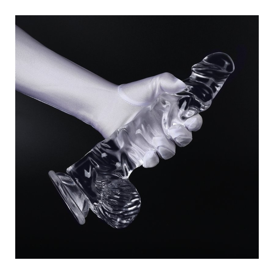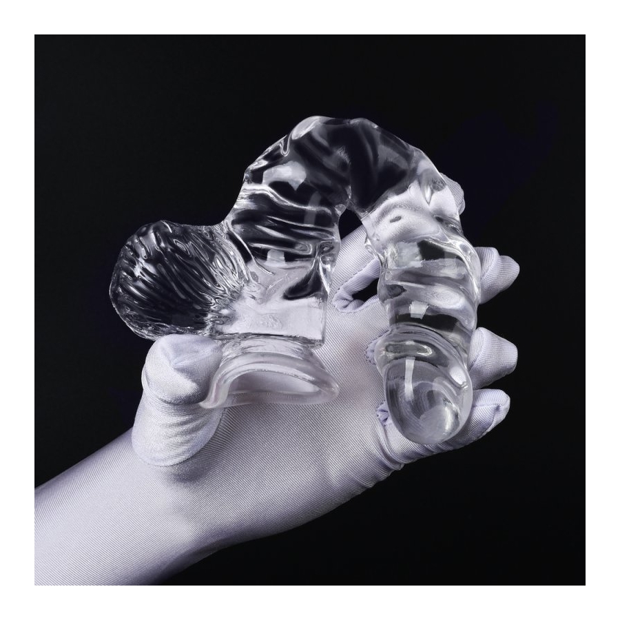 Transparenter Dildo mit einer stark erhabenen Oberfläche für ein hohes Maß an Vergnügen.